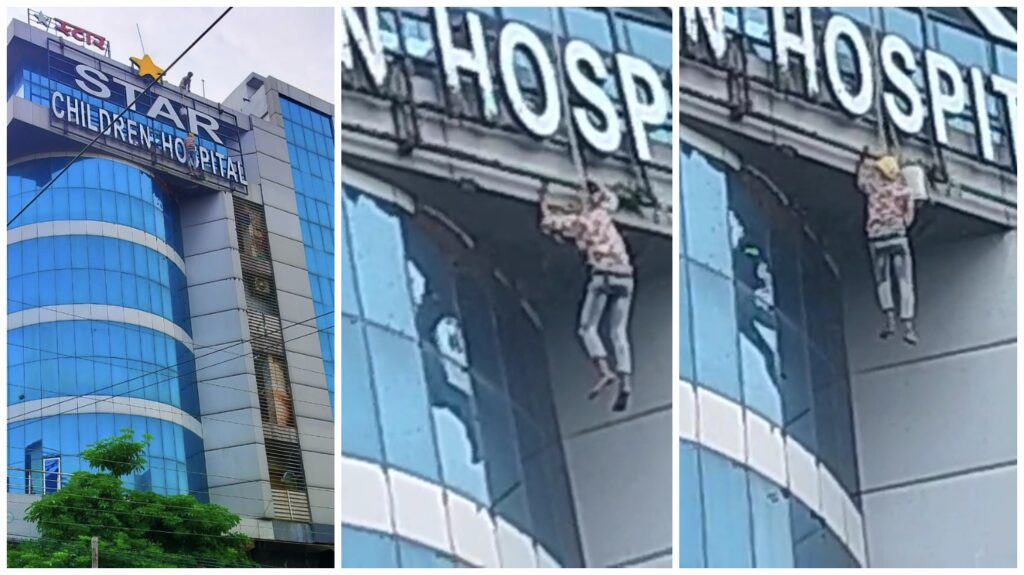 इसी बीच आसपास खड़े लोगों ने अस्पताल प्रबंधन पर भी सवाल उठाए हैं। उनका कहना है कि इतनी ऊंची बिल्डिंग पर इस तरह का खतरनाक काम कराया जाना नियमों के खिलाफ है और यदि कोई हादसा होता तो उसकी जिम्मेदारी किसकी होती?