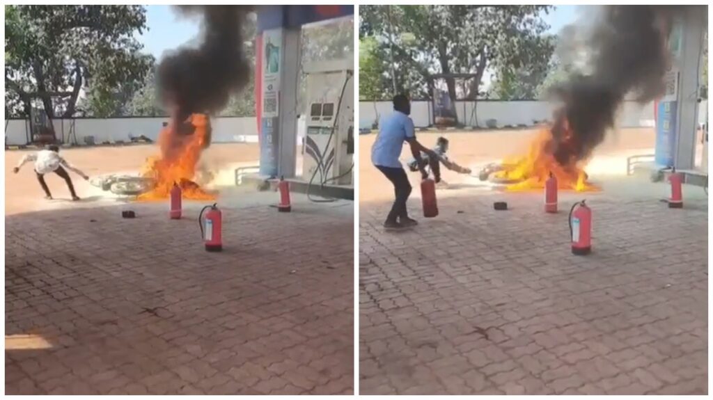 घटना के प्रत्यक्षदर्शियों के अनुसार, युवक पेट्रोल भरवाने के बाद बाइक स्टार्ट करने की कोशिश कर रहा था, तभी प्लग वायर के पास से चिंगारी निकली। चिंगारी पेट्रोल टंकी से उठ रही गैस के संपर्क में आते ही आग का रूप ले ली और पलभर में बाइक धू-धूकर जल उठी। युवक ने जैसे-तैसे कूदकर अपनी जान बचाई, जबकि आसपास मौजूद लोग डर के मारे दूर भाग गए। मौके पर कुछ सेकंड के लिए हड़कंप मच गया और लोग हादसे की आशंका से सहम गए।