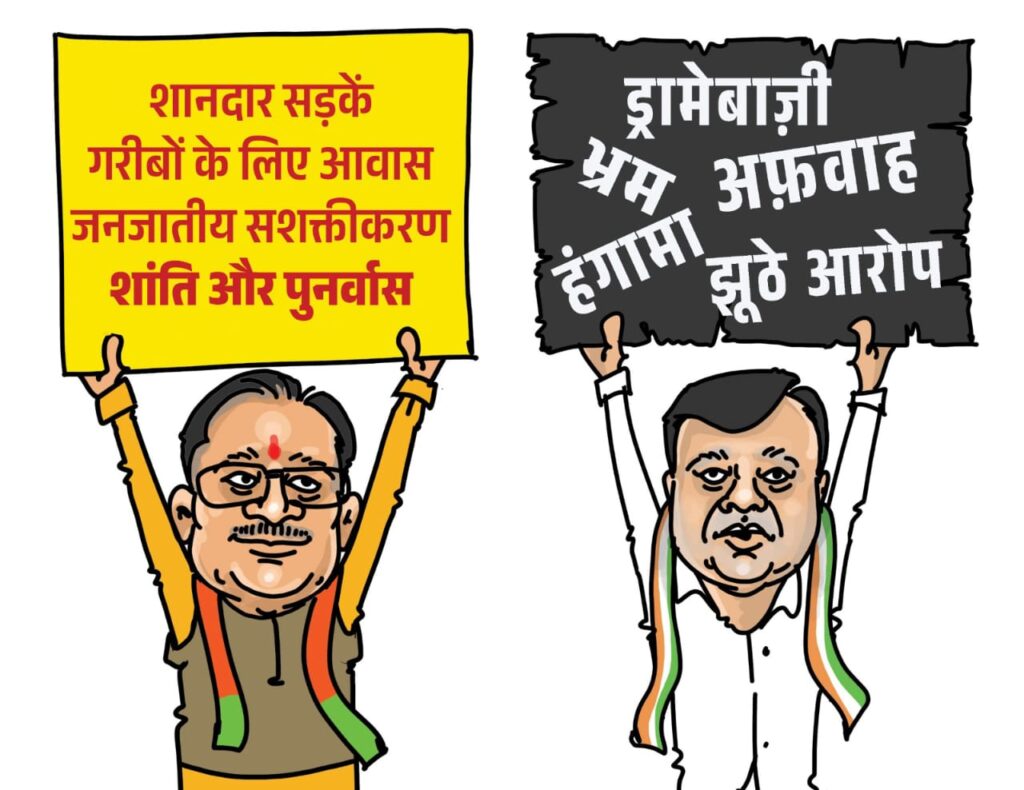 रायपुर। सोशल मीडिया प्लेटफॉर्म X पर बीजेपी ने एक व्यंग्यात्मक कार्टून पोस्ट कर राजनीतिक माहौल गरमा दिया है। इस पोस्ट में बीजेपी ने अपने शासनकाल और कांग्रेस शासनकाल के बीच का अंतर दर्शाते हुए ‘सुशासन बनाम कुशासन’ का तुलनात्मक चित्रण किया है।