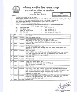 रायपुर। छत्तीसगढ़ माध्यमिक शिक्षा मंडल (CGBSE) ने आगामी 10वीं और 12वीं बोर्ड परीक्षाओं का विस्तृत परीक्षापत्रक जारी कर दिया है। टाइम टेबल घोषित होने के साथ ही विद्यार्थियों, अभिभावकों और विद्यालयों में परीक्षा को लेकर तैयारी की हलचल तेज हो गई है।