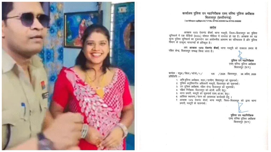 बिलासपुर। छत्तीसगढ़ के बिलासपुर जिले में पुलिस वर्दी में डांस कर सोशल मीडिया पर वीडियो पोस्ट करना एक आरक्षक को भारी पड़ गया। मस्तूरी थाने में पदस्थ आरक्षक देवानंद कैवर्त्य ने अपनी पत्नी के साथ ‘हाय रानी, हेलो रानी’ गाने पर डांस करते हुए वीडियो बनाया और उसे इंस्टाग्राम पर शेयर कर दिया, जो देखते ही देखते वायरल हो गया।