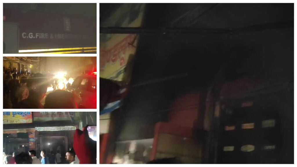 बिलासपुर। बिलासपुर शहर के कोतवाली थाना क्षेत्र अंतर्गत गोलबाजार स्थित आयुर्वेदिक अमरनाथ दुकान के बाजू में देर रात भीषण आगजनी की घटना सामने आई। देखते ही देखते आग ने पास की दुकानों को अपनी चपेट में ले लिया। बताया जा रहा है कि महामाया बैग की दुकान सहित कुल 4 से 5 दुकानें आग की लपटों में आ गईं। अचानक लगी इस आग से बाजार क्षेत्र में अफरा-तफरी का माहौल बन गया और आसपास के लोग अपनी जान बचाने के लिए भाग खड़े हुए। आग इतनी तेजी से फैल रही है कि अभी तक इसे पूरी तरह काबू में नहीं लाया जा सका है।