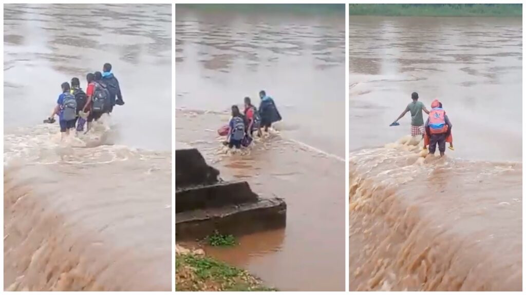 कांकेर। प्रदेश में हो रही लगातार भारी बारिश से कांकेर जिले के नदी-नाले उफान पर हैं। ऐसे में ग्रामीणों और छात्रों की जान पर बन आई है। कोयलीबेडा ब्लॉक का एक वीडियो सोशल मीडिया पर तेजी से वायरल हो रहा है, जिसमें बच्चे और बड़े उफनती नदी को आपसी सहारे के सहारे पार करते नजर आ रहे हैं। यह दृश्य जितना भयावह है, उतना ही व्यवस्था पर सवाल भी खड़े करता है।