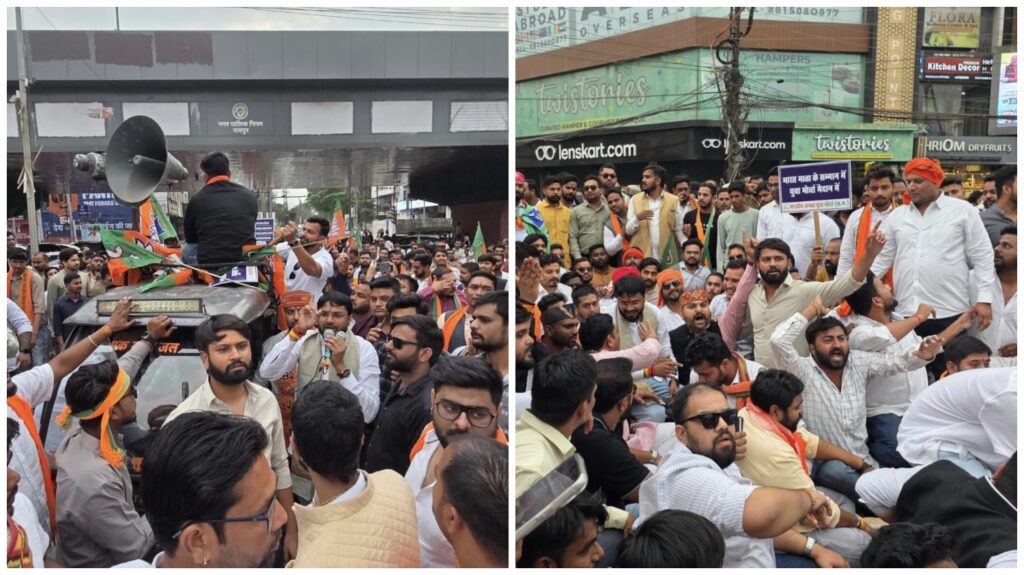 भाजयुमो के सैकड़ों कार्यकर्ता अलग–अलग जिलों से रायपुर पहुंचे और कांग्रेस कार्यालय की ओर कूच करने लगे। हालांकि, कांग्रेस दफ्तर से पहले शंकर नगर चौक पर पुलिस ने भारी सुरक्षा बल तैनात कर टिन शेड और बैरिकेड्स लगाकर रास्ता रोक दिया। कार्यकर्ताओं ने आगे बढ़ने की कोशिश की, जिस पर पुलिस और प्रदर्शनकारियों के बीच कुछ देर तक धक्का–मुक्की और नोकझोंक की स्थिति बनी रही। हालात बिगड़ते देख पुलिस ने सख्ती बरती, जिसके चलते कार्यकर्ता राजीव भवन तक नहीं पहुंच सके और अंततः बिना घेराव किए ही वापस लौट गए। इस दौरान शंकर नगर चौक और आसपास के इलाकों में लगभग आधे घंटे तक यातायात बाधित रहा। पुलिस को स्थिति संभालने के लिए अतिरिक्त बल बुलाना पड़ा और लगातार समझाइश देकर प्रदर्शनकारियों को शांत किया गया।