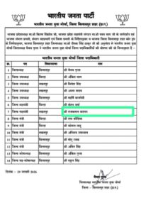 पार्टी सूत्रों के अनुसार यह बदलाव युवा मोर्चा के कार्यों को अधिक प्रभावी बनाने और स्थानीय युवाओं को राजनीति में सक्रिय रूप से जोड़ने की दिशा में एक महत्वपूर्ण कदम है। नए पदाधिकारियों की नियुक्ति के साथ ही जिले में संगठनात्मक गतिविधियों और कार्यक्रमों को और व्यवस्थित ढंग से संचालित करने की योजना बनाई जा रही है।